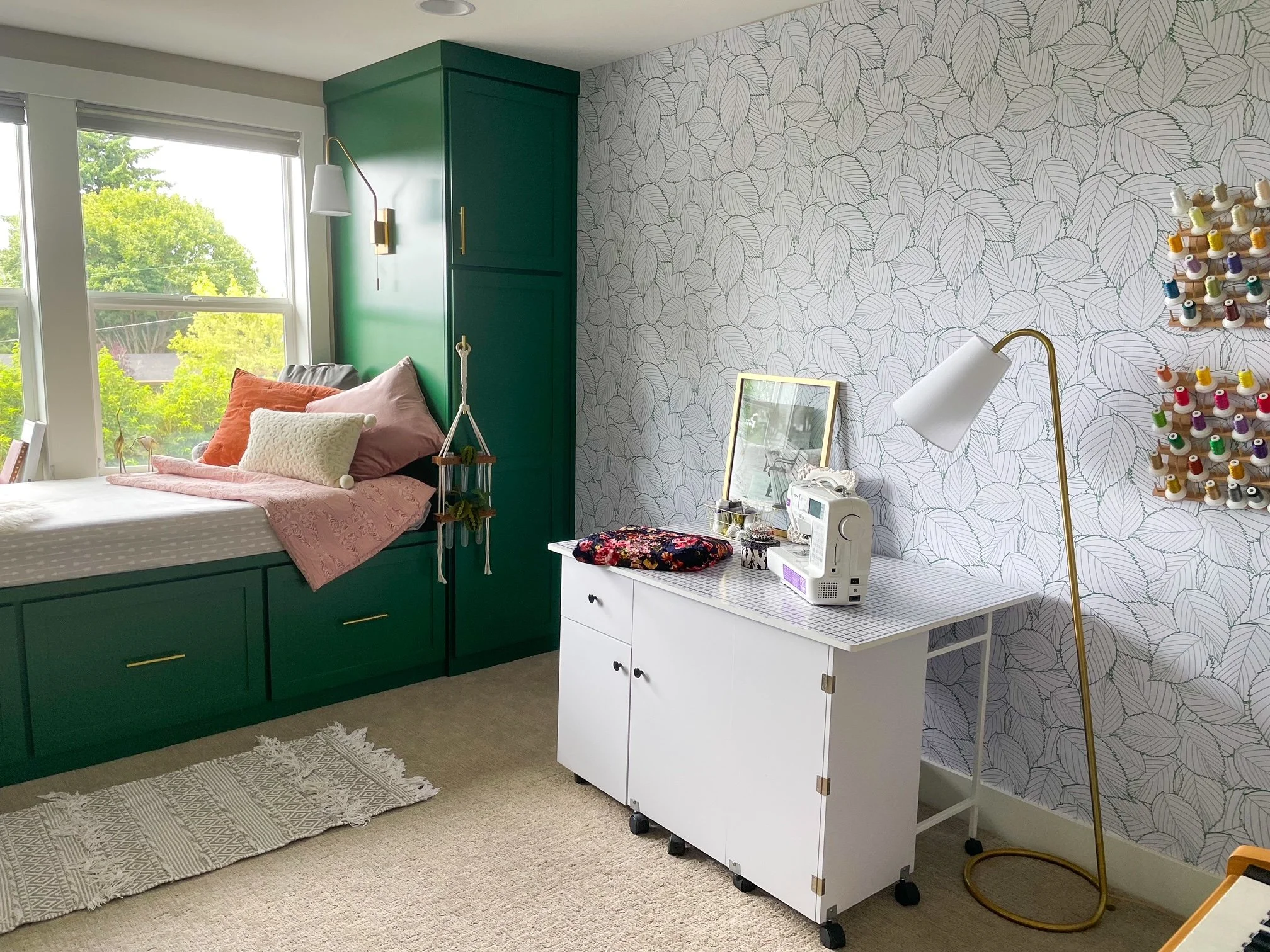 From blank canvas to cozy hideaway, this creative space features custom built-in cabinetry + warm lighting.